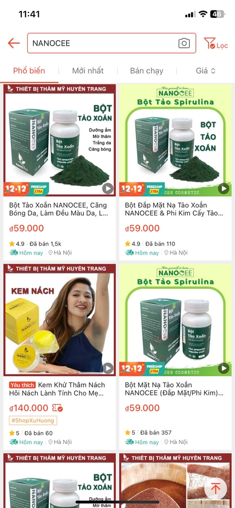 ► Shopee: Thẩm Mỹ Huyền Trang NANOCEE